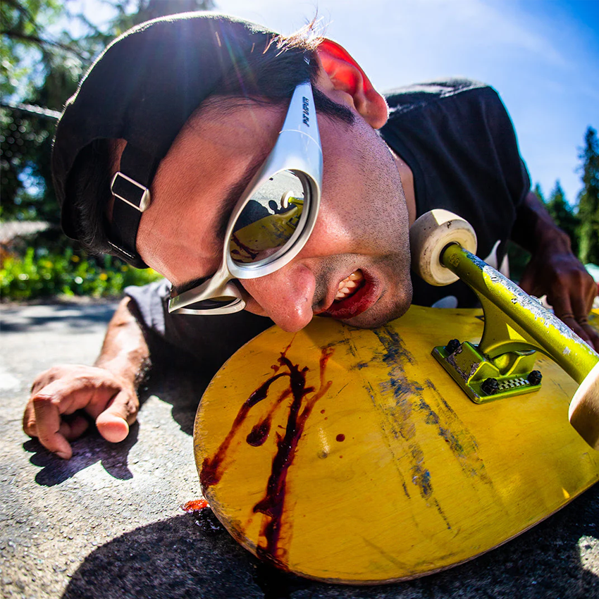Unit price / perWelcome to The Slammer, a durable sunglass meant for eating shit. A smaller shape, The Slammer fits right into your eye socket for radical wind and shit protection. Witness the destruction with Extreme Seeing.