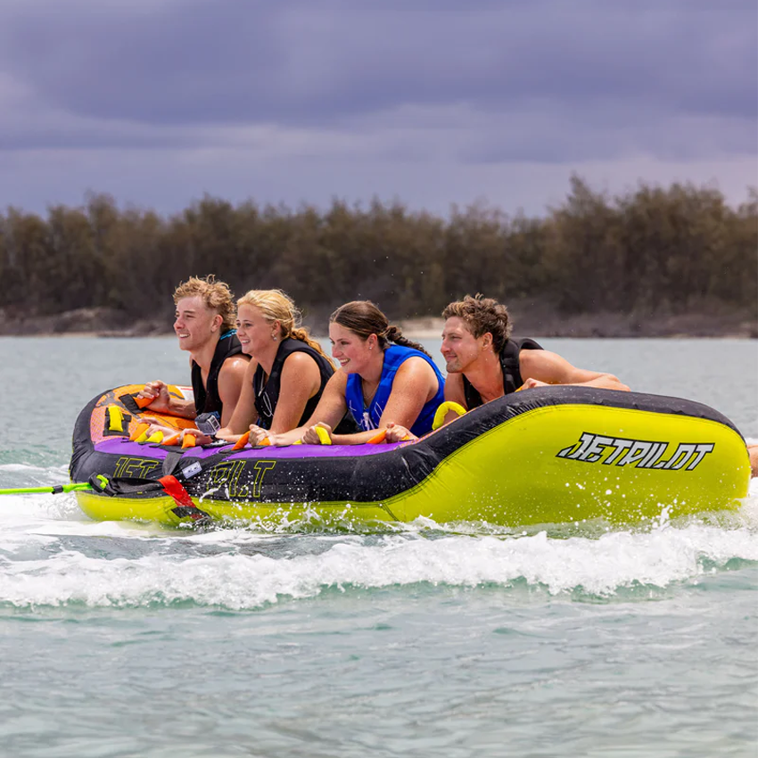 Unit price perGear up for epic water adventures with the Jetpilot Wing 4 Person Towable Tube in Purple/Orange. Designed for up to four riders, this towable tube is perfect for families and groups looking to have a blast on the water together. With room for more riders, you can do fewer boat trips and get everyone enjoying the ride at the same time.