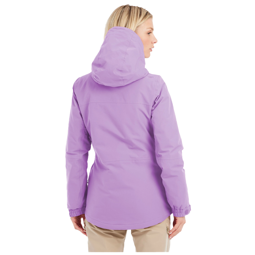 This jacket is built for wet days, with fully taped seams, waterproof zips, an inner placket and fixed hood, all supported by a 20,000 mm waterproof rating to keep snow and slush out.