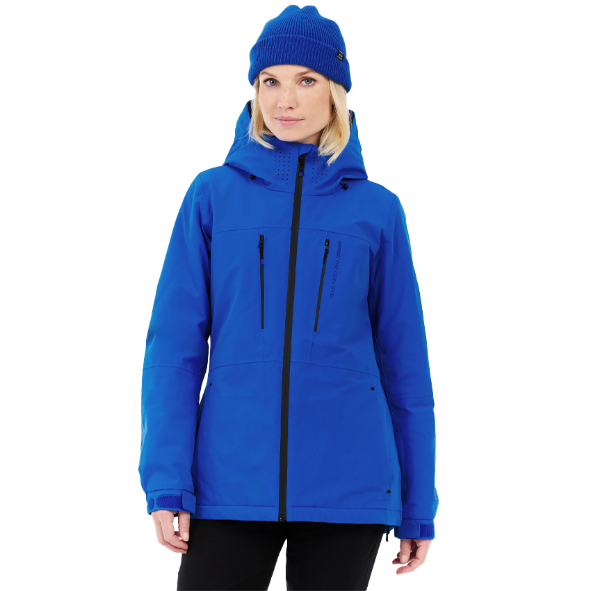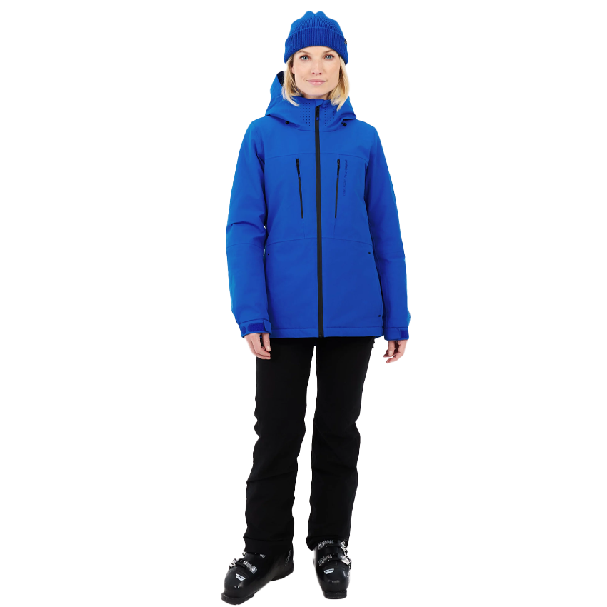 The BEVERLY has ergonomic shaping, a slim fit, and a regular length for a streamlined feel. Practical features, including thumbhole inner cuffs, adjustable outer cuffs, a goggle pocket, and a lift pass pocket, make it easy to move through busy days on the hill.