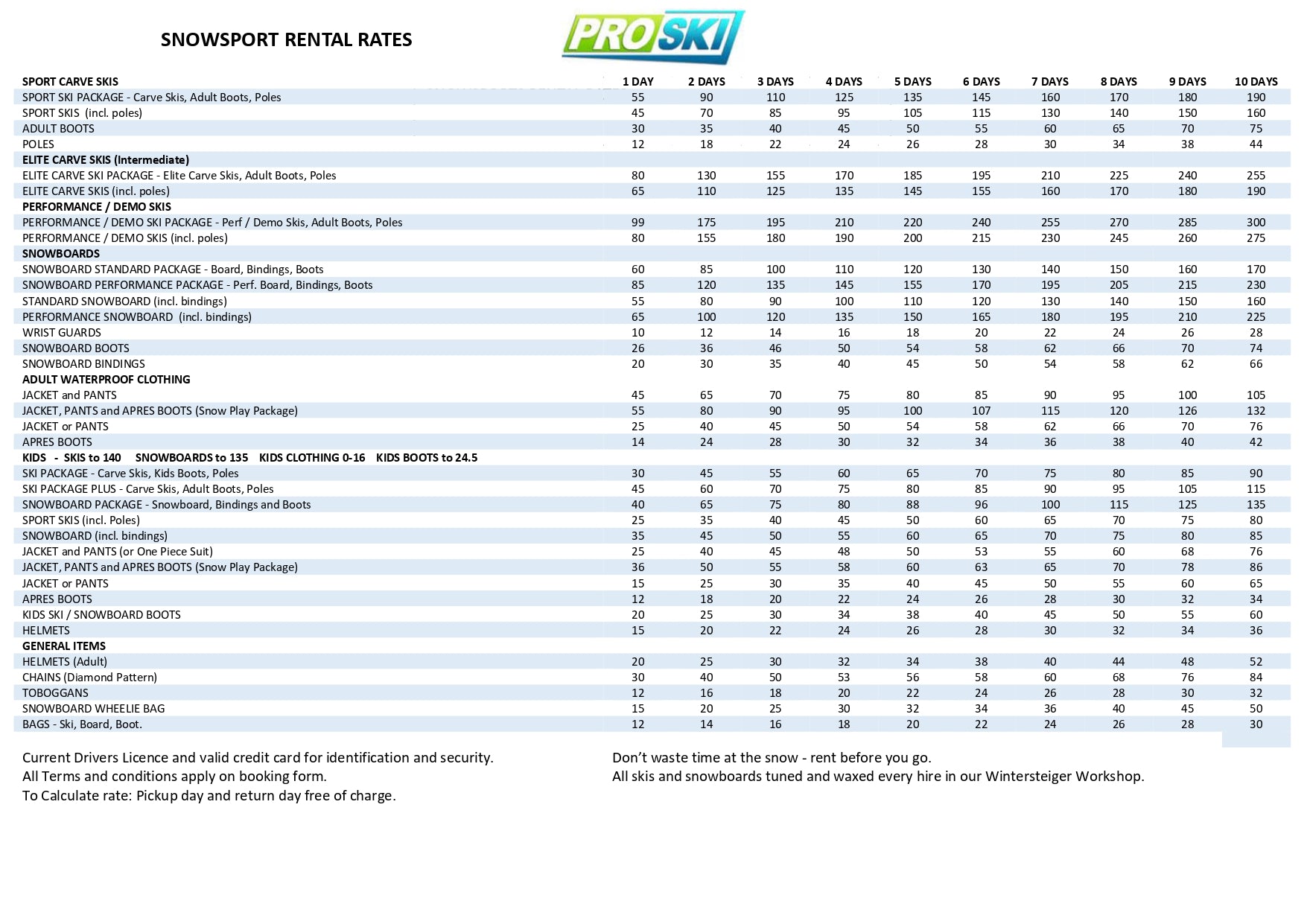 Travel time is on us. You won’t pay for the day you pick up your gear or the day you return it. That means two free days of hire, giving you better value and more time on the mountain.