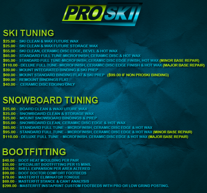 The edges of your ski or snowboard will become blunt over time or from prolonged use, and it is essential to get rid of any nicks, burrs, rust or damage to ensure the maximum performance when on-snow. Dull edges will not grip the snow and have a tendency to throw off your technique. Therefore it is very important to have your equipment ceramic-disc tuned to ensure the edges are sharp, with a perfectly true edge from tip to tail and rust-free for grip and edge hold for maximum performance.